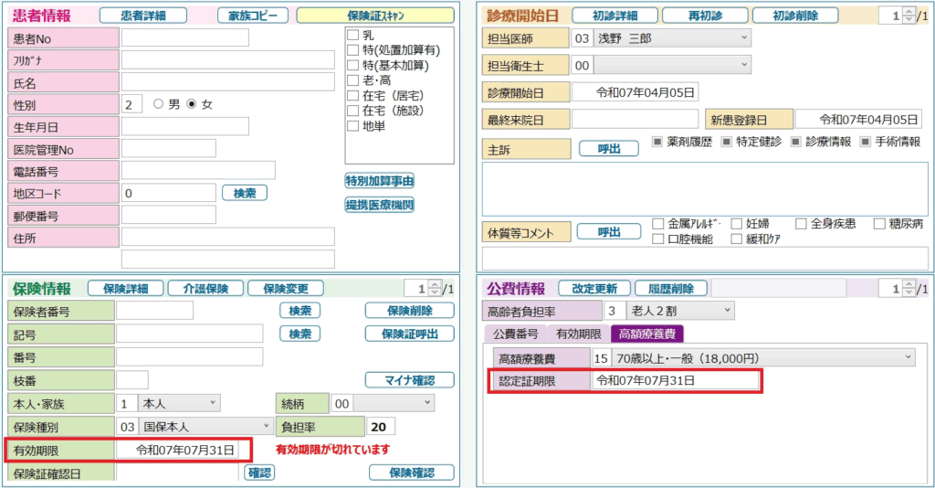 この現象は、『保険情報の有効期限』と『高額療養費の認定証期限』にて発生しているのを確認しております。